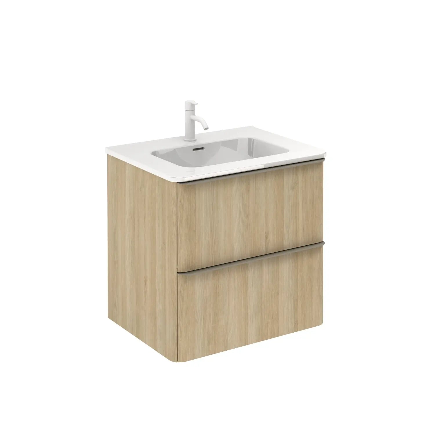 The integrated ceramic top mirrors the vanity's curved corners, creating a cohesive and stylish look. An overflow system is included for added peace of mind. This vanity is not just a fixture, but a statement piece that will give your bathroom that desired touch of modernity.